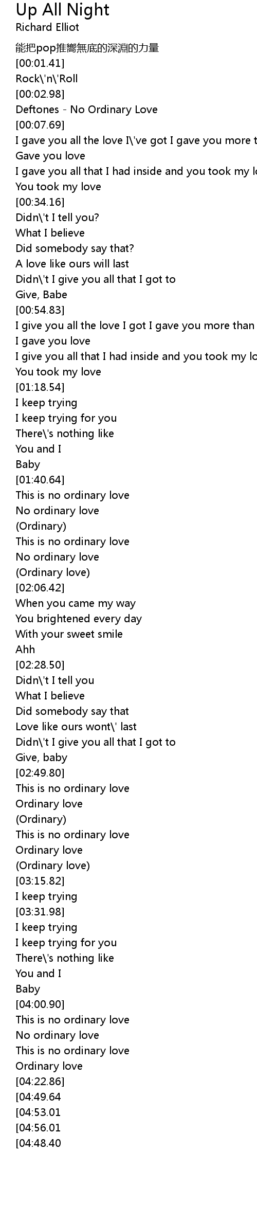 | [01:58.71] | No ordinary love |