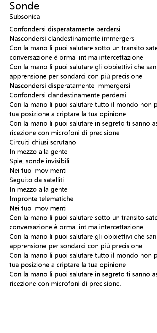 | Con la mano li puoi salutare sotto un transito satellitare ogni forma di conversazione è ormai intima intercettazione | |