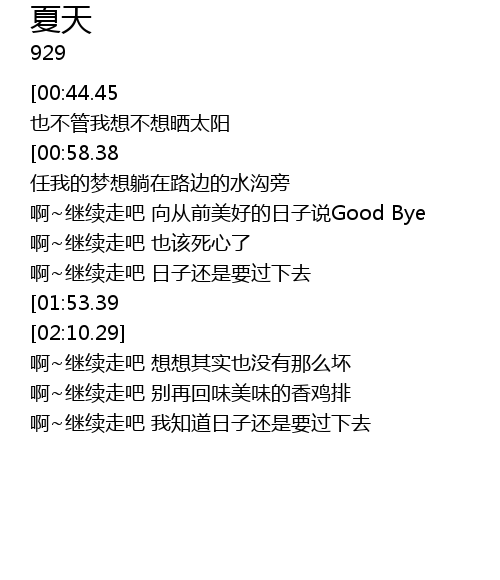 | [02:44.49][00:44.45] | 夏天就这样悄悄地来了 也不管我想不想晒太阳 |