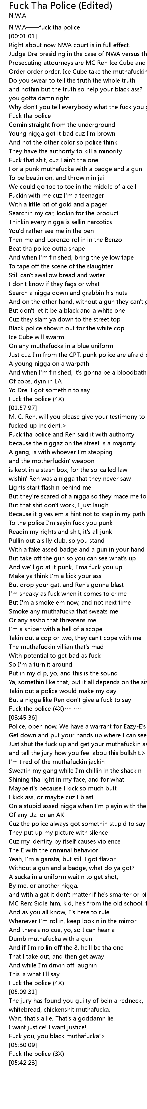 | [02:17.67] | Fuck tha police and Ren said it with authority |