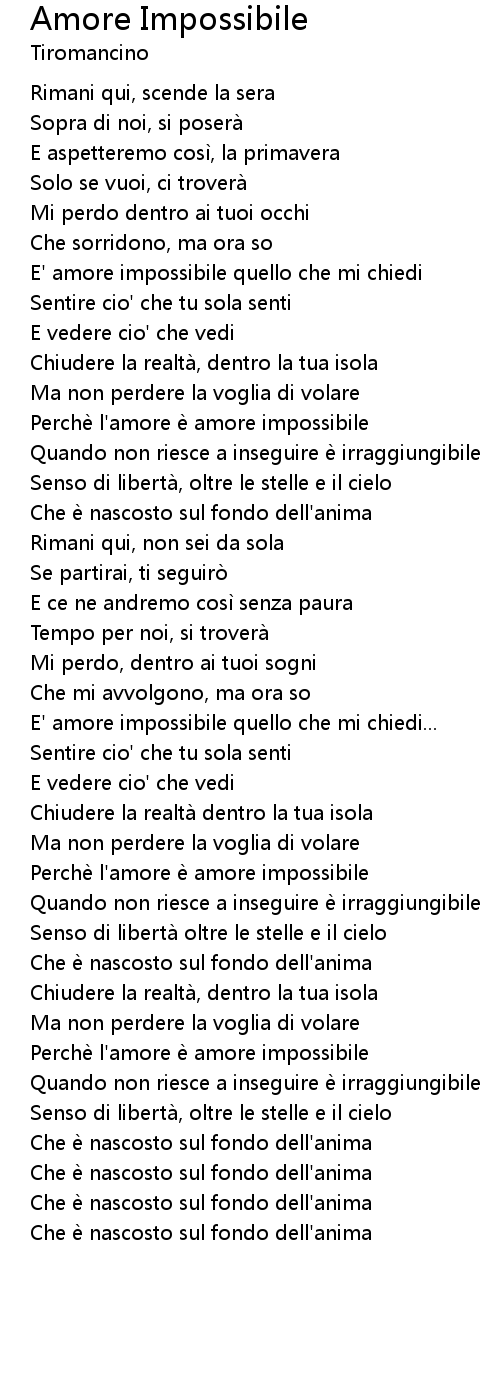 | E' amore impossibile quello che mi chiedi | |