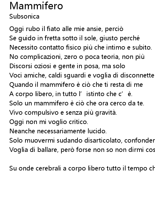 | Solo un mammifero e cio che ora cerco da te. | |