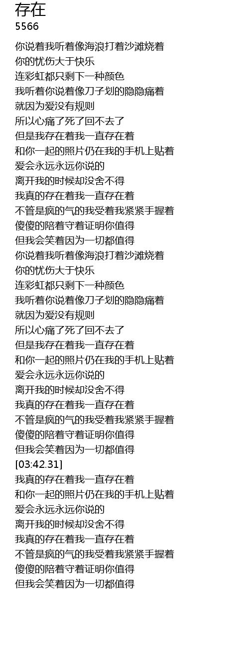| [03:51.45] | 我真的存在着我一直存在着 |