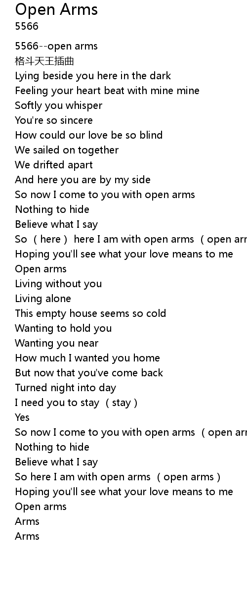 | [00:03.10] | 5566--open arms |