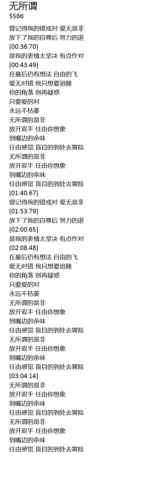 | [03:17.43] | 无所谓的是非 |