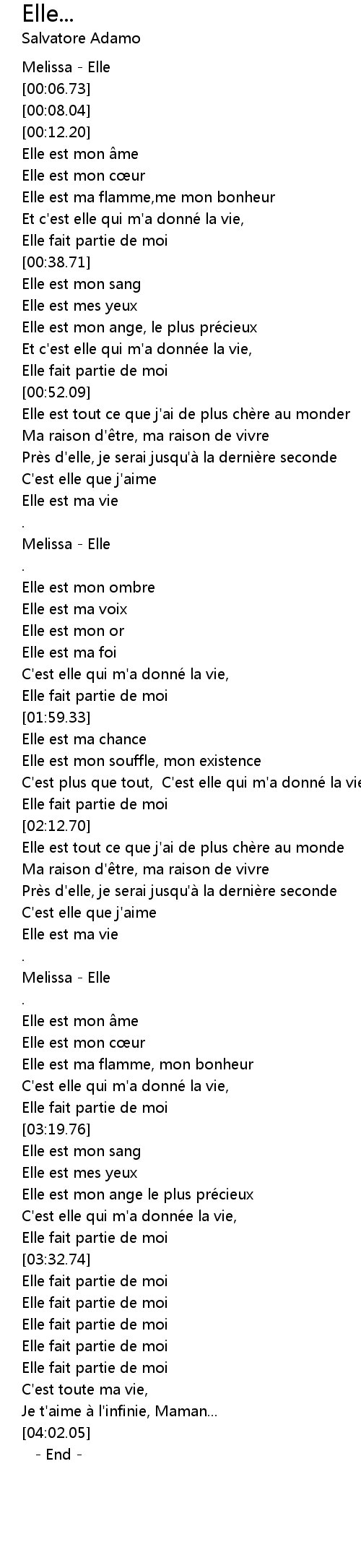 | [01:24.90] | Melissa - Elle |
