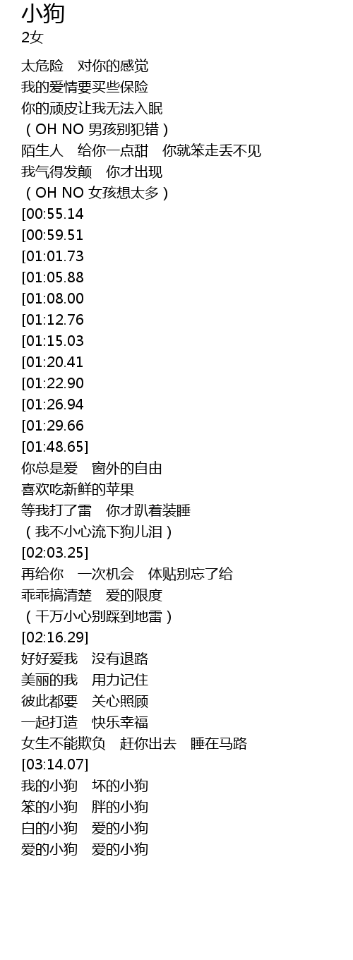 | [02:51.00][01:29.66] | 小狗 我的小狗 别再玩火 我的小狗 |