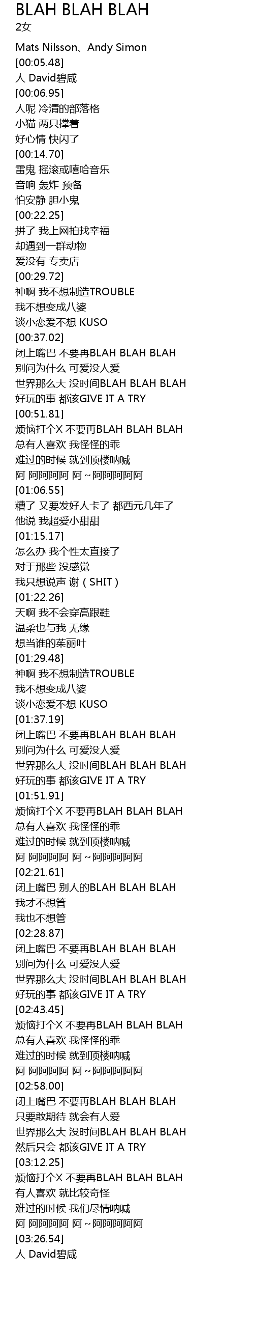 | [02:58.39] | bi shang zui ba bu yao zai BLAH BLAH BLAH |
