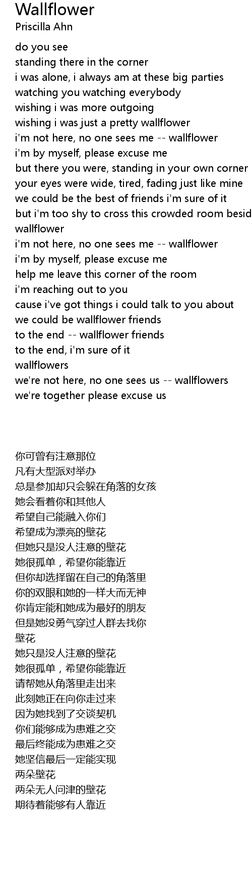 | [01:39.149] | i' m not here, no one sees me wallflower |