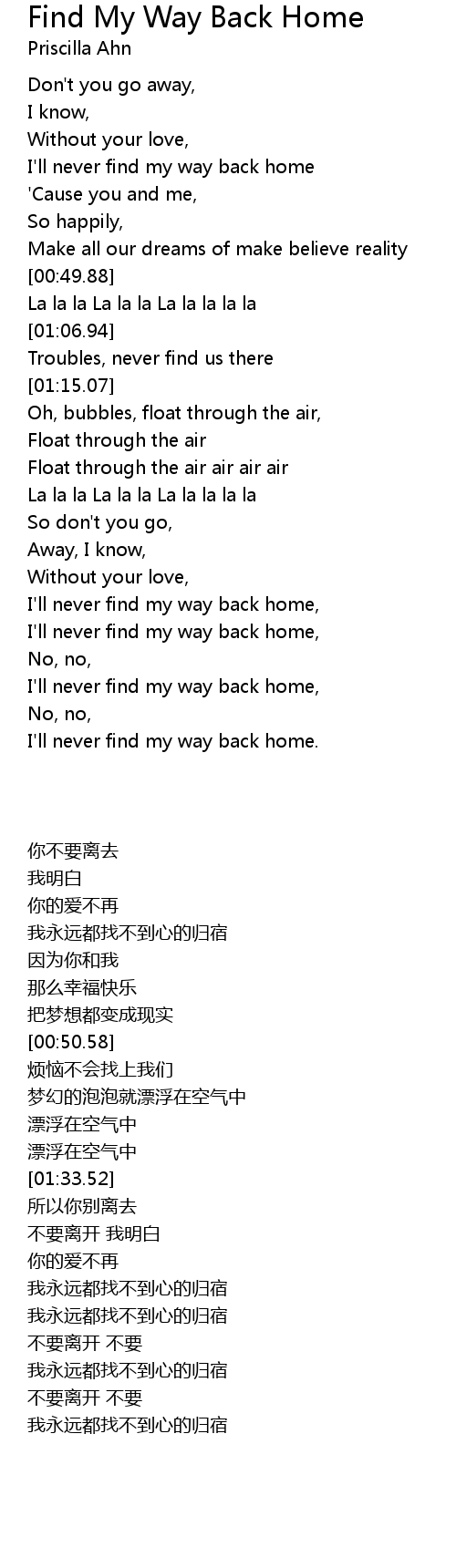 Find My Way Back Home Lyrics
