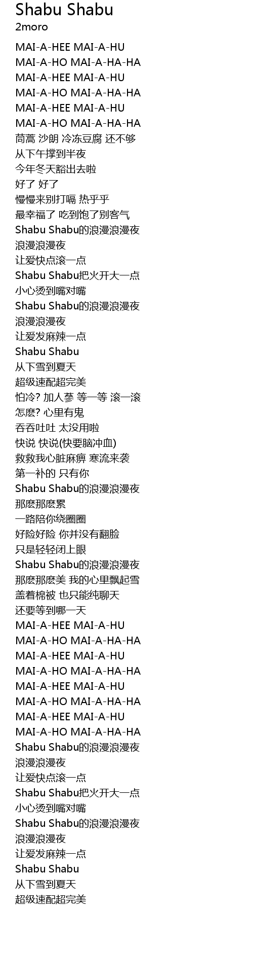 | [02:00.42] | Shabu Shabu de lang man lang man ye |