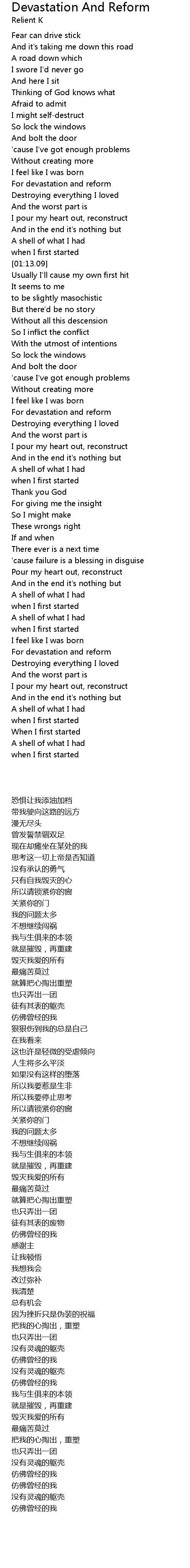 For devastation and reform |
