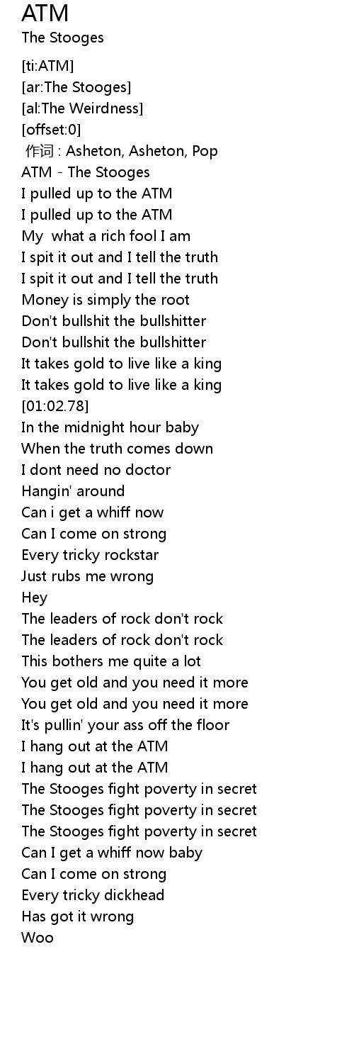 | [00:00.00] | 作词 : Asheton, Asheton, Pop |