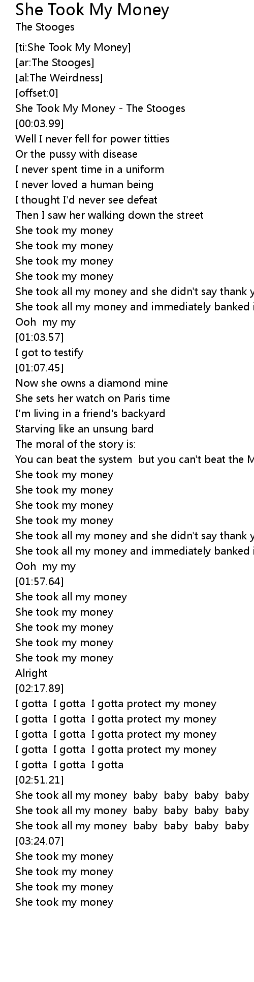 [ti:She Took My Money] |