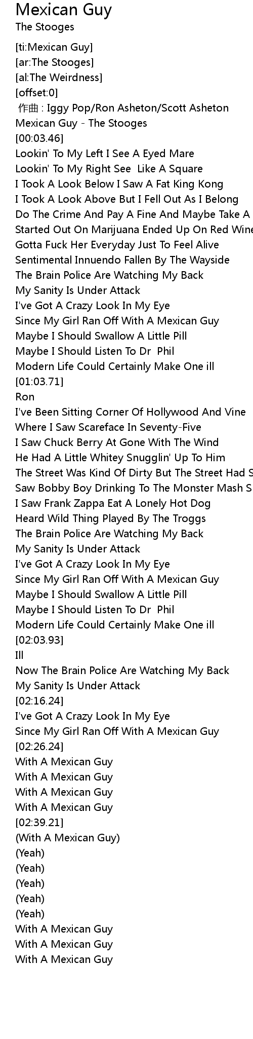 | [01:43.56] | Since My Girl Ran Off With A Mexican Guy |