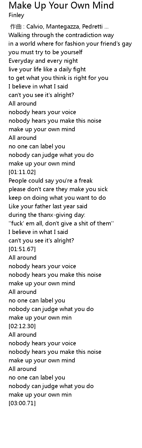 | [01:38.25] | '' fuck' em all, don' t give a shit of them'' |
