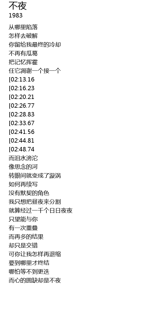 | [01:16.11][02:41.56][03:38.63] | 象无尽黑夜 |