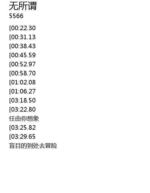 | [03:33.66][03:18.50][02:48.66][02:33.31][01:24.83][01:09.03] | 无所谓的是非 |