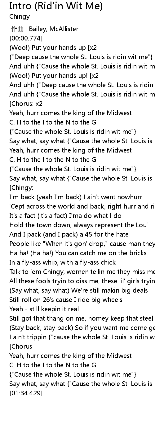 | [01:29.302] | {"Cause the whole St. Louis is ridin wit me"} |