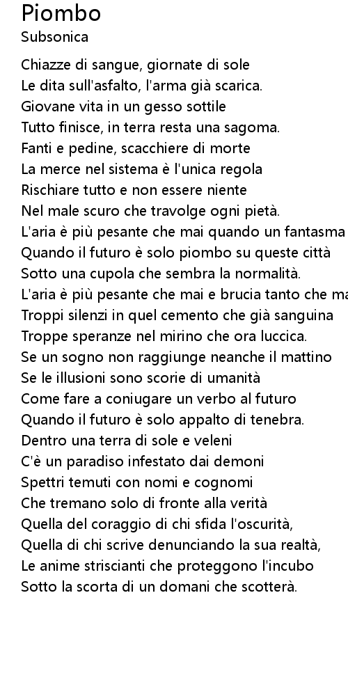 | Troppi silenzi in quel cemento che gia sanguina | |