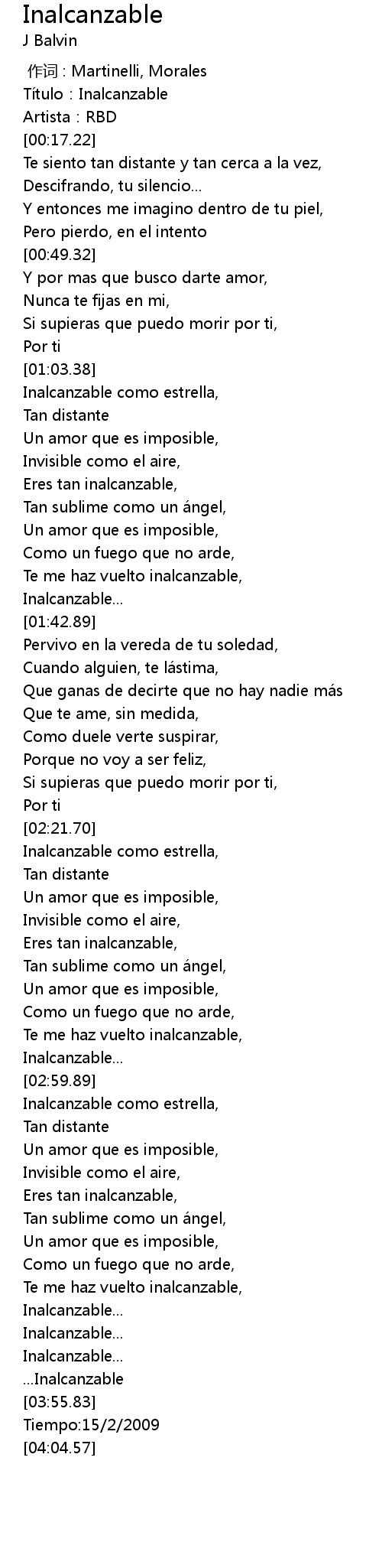 | [03:50.30] | ...Inalcanzable |