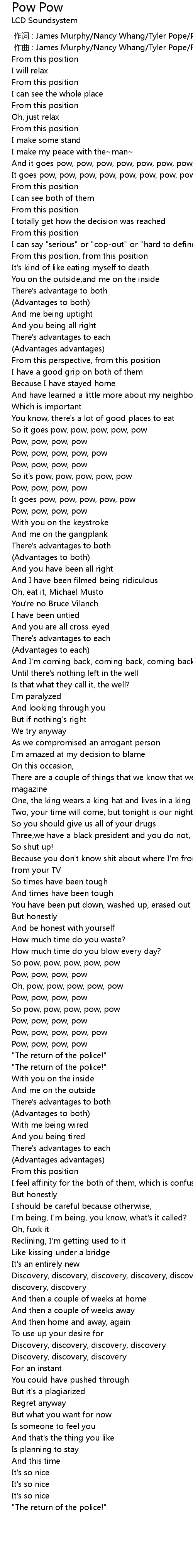 | [00:56.50] | And it goes pow, pow, pow, pow, pow, pow, pow, pow, pow |