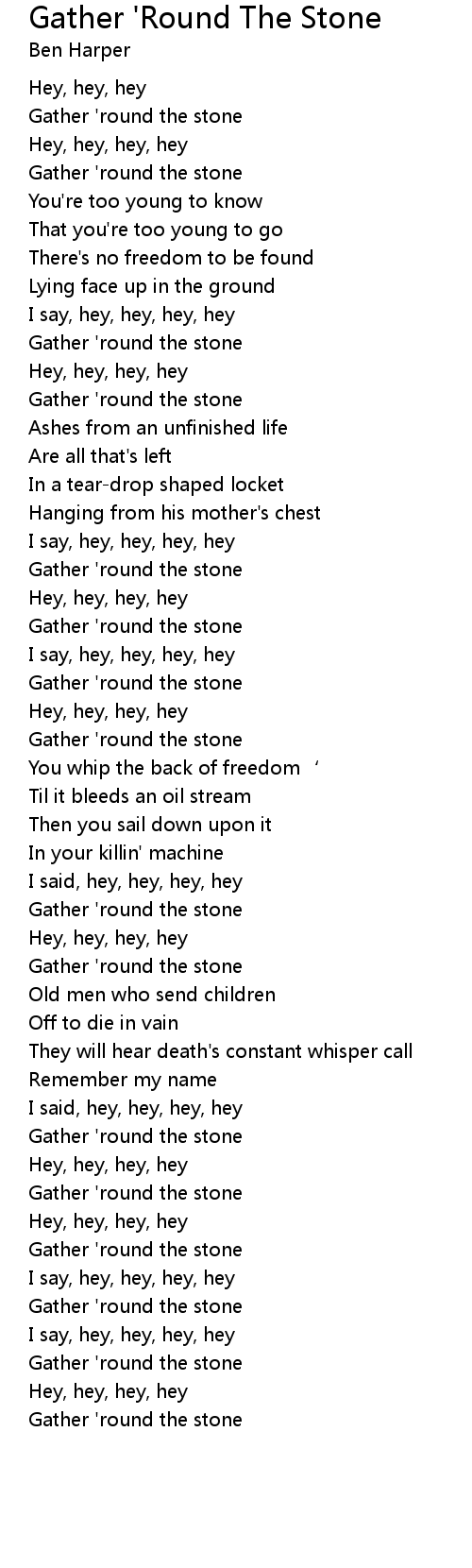 | Gather ' round the stone | |