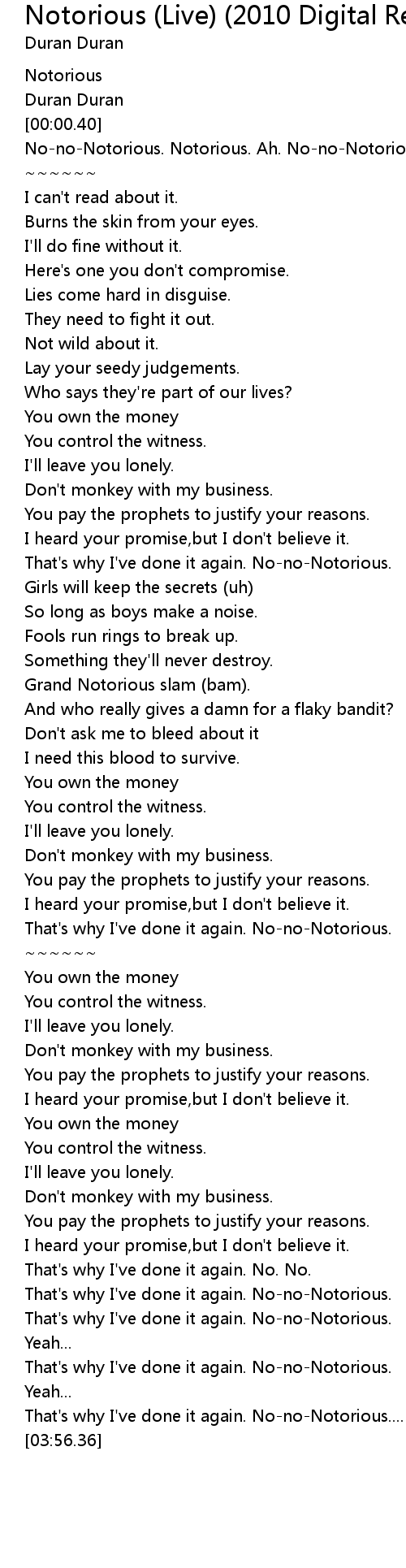 Notorious (Live) (2010 Digital Remaster) Lyrics
