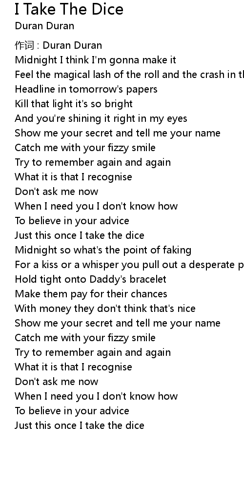| Song | I Take The Dice |