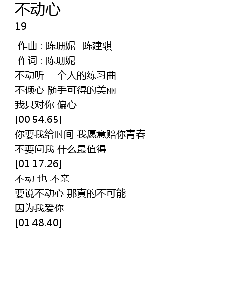 | [00:19.03] | 不动听 一个人的练习曲 |