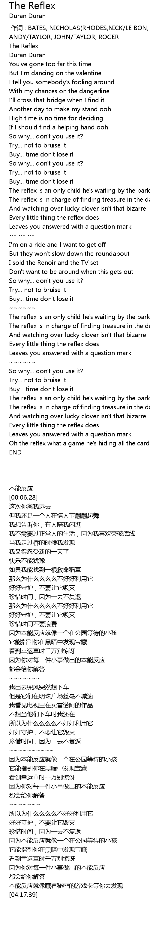 | [00:00.00] | 作词 : BATES, NICHOLAS(RHODES,NICK/LE BON, SIMON/TAYLOR, ANDY/TAYLOR, JOHN/TAYLOR, ROGER |