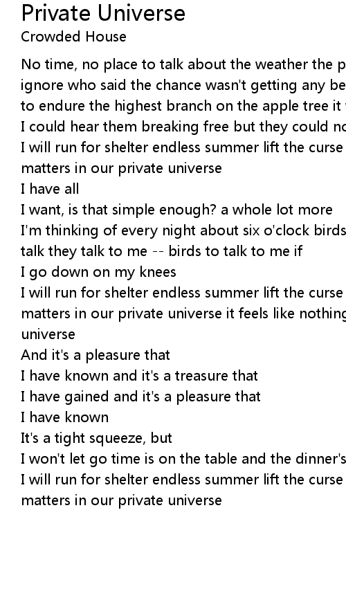 I will run for shelter endless summer lift the curse it feels like nothing matters in our private universe it feels like nothing matters in our private universe |