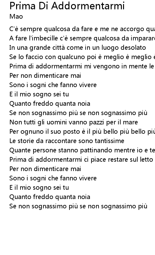 | Song | Prima Di Addormentarmi |