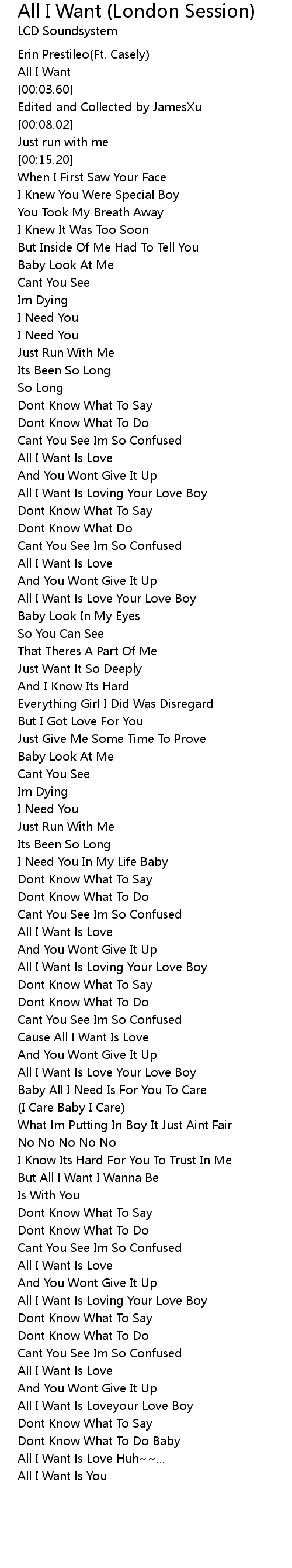 All I Want Is Love Your Love Boy |