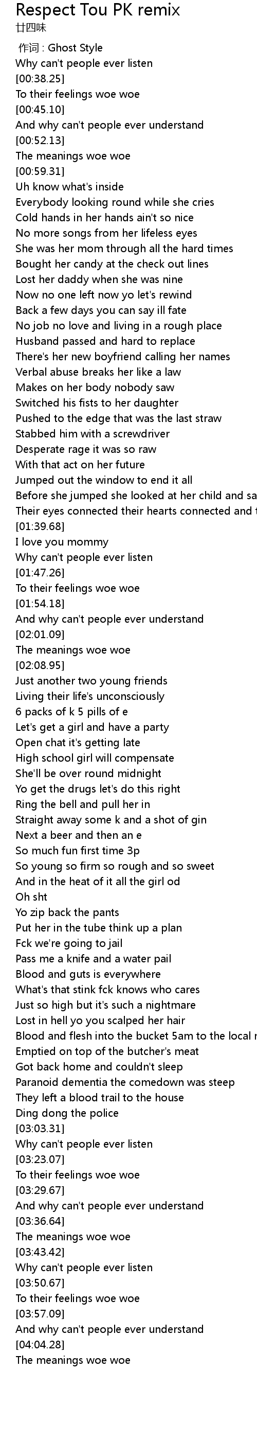 | [02:48.53] | Lost in hell yo you scalped her hair |