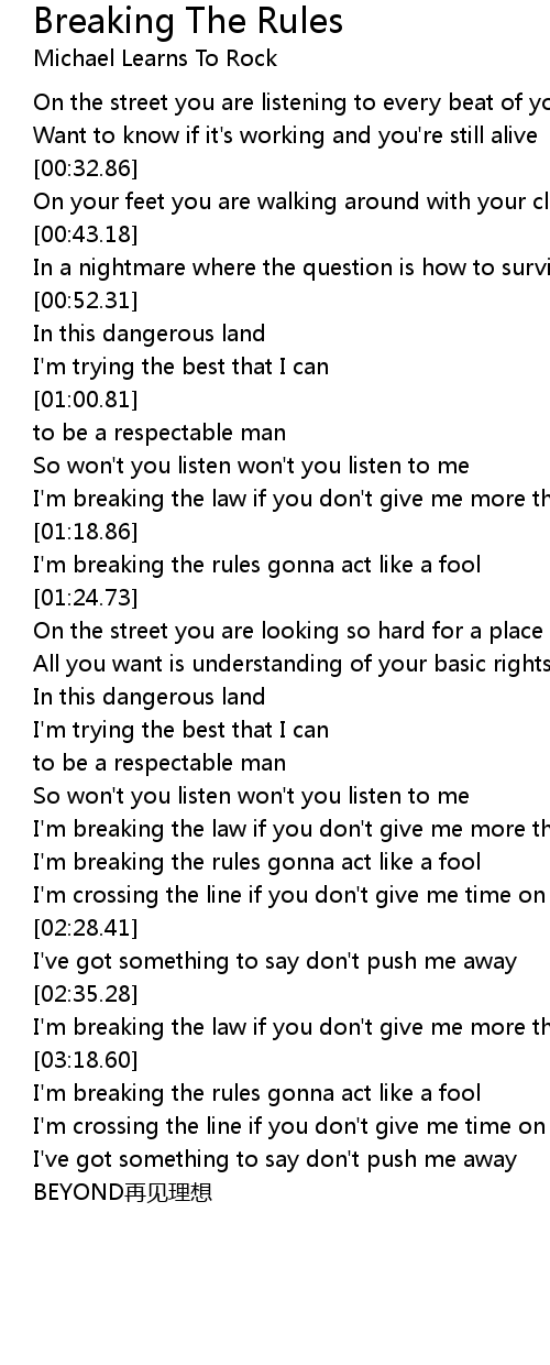 | [03:20.66] | I'm breaking the rules gonna act like a fool |