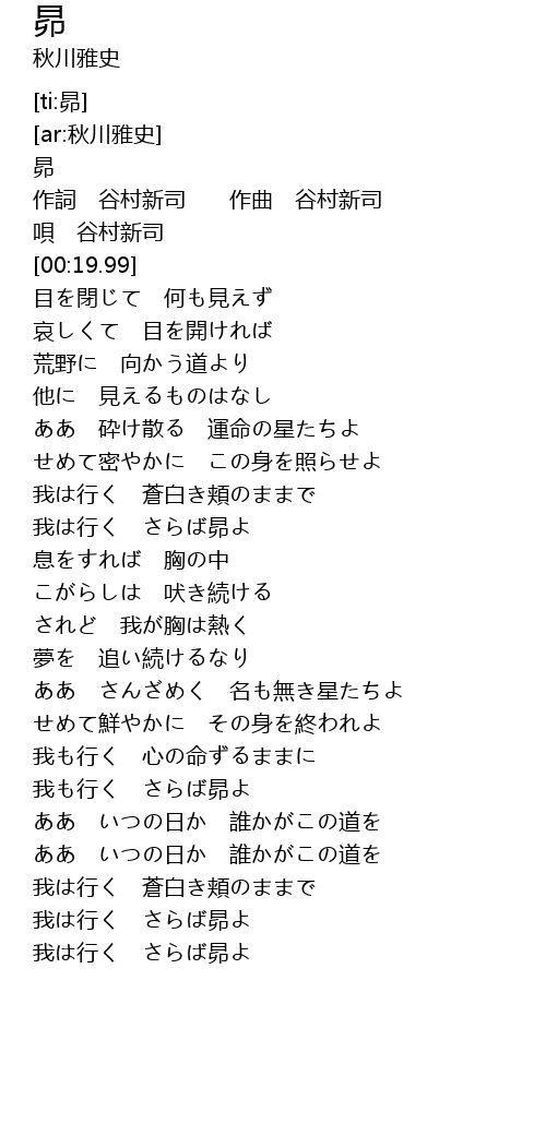 | [04:25.72] | 我は行く さらば昴よ |