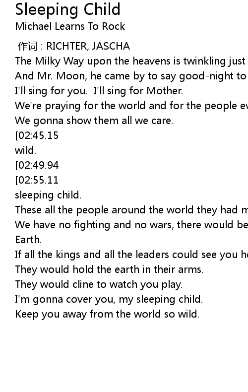 | [03:05.72][02:45.15][01:58.83][00:56.61] | Oh, my sleeping child, the world' s so wild. |