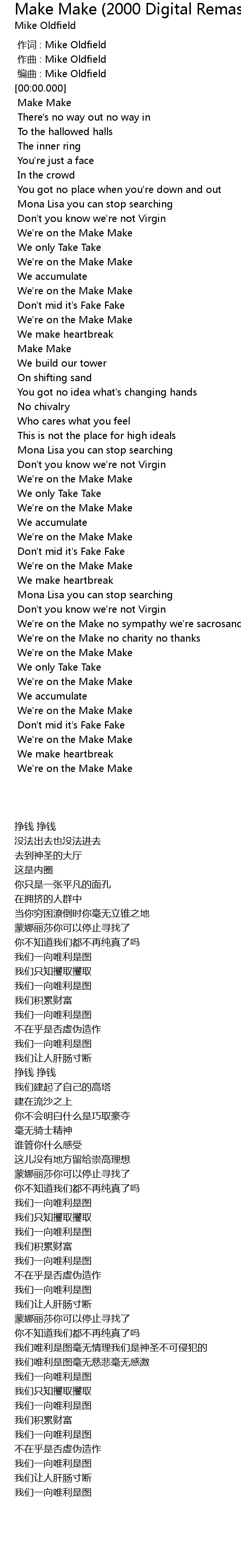 | [00:00.000] | 编曲 : Mike Oldfield |