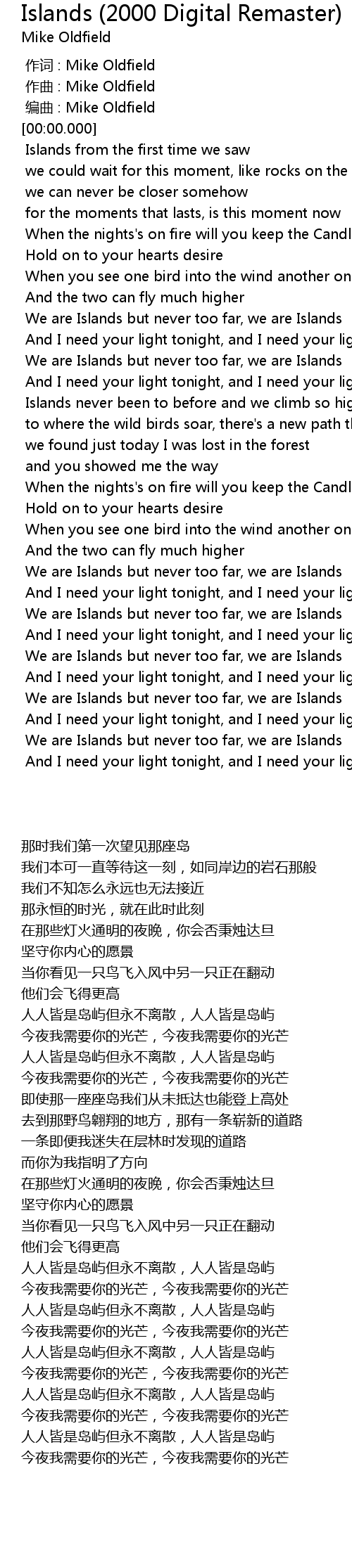 | [03:48.887] | We are Islands but never too far, we are Islands |