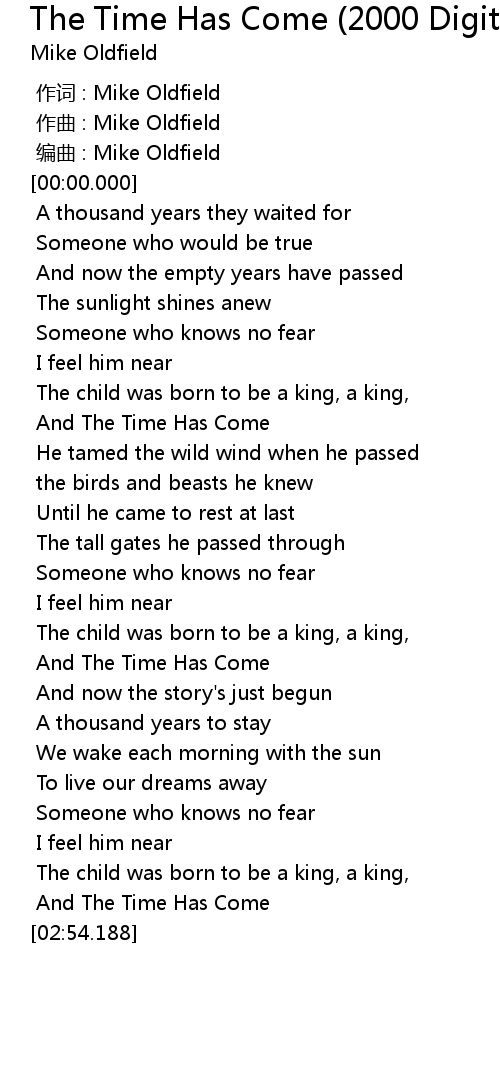 | [00:00.000] | zuò cí : Mike Oldfield |
