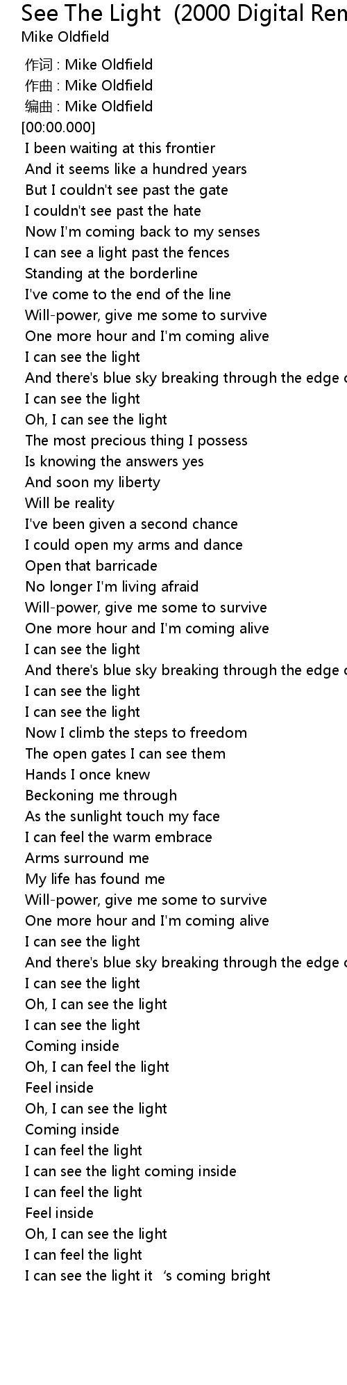 | [00:00.000] | 作词 : Mike Oldfield |