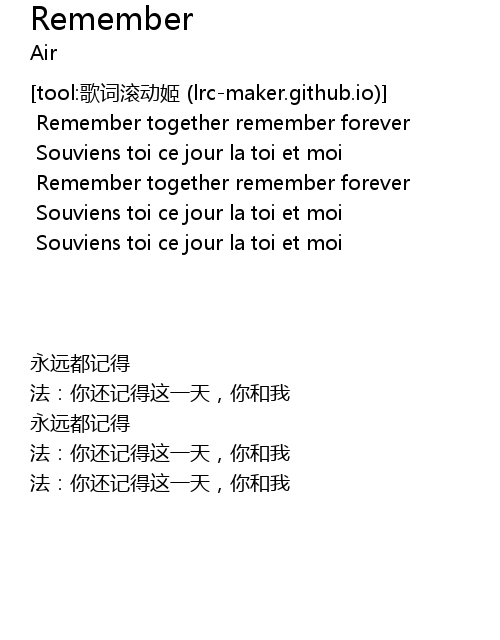 | [00:45.470] | Souviens toi ce jour la toi et moi |