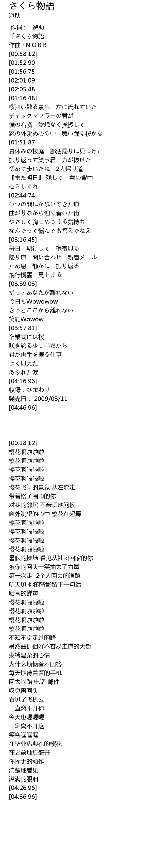 | [00:18.12] | 「さくら物語」 |