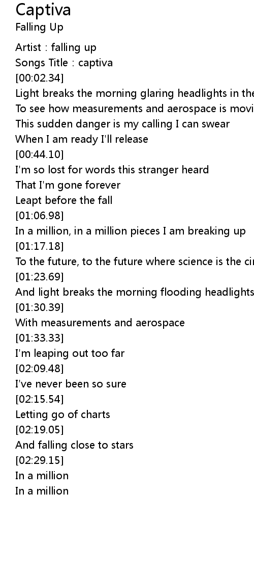 | [01:12.17] | In a million, in a million pieces I am breaking up |