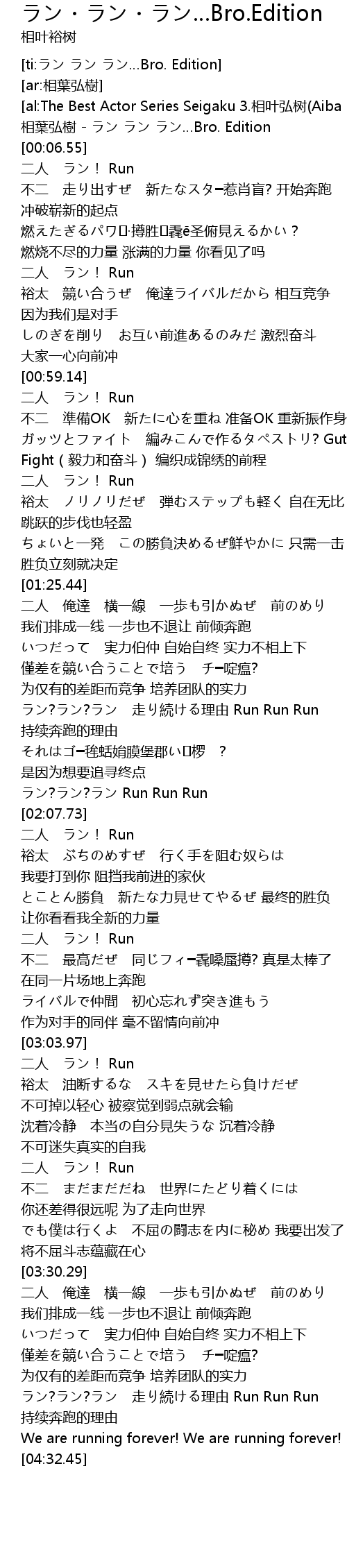 | [01:53.94] | ラン?ラン?ラン 走り続ける理由 Run Run Run 持续奔跑的理由 |