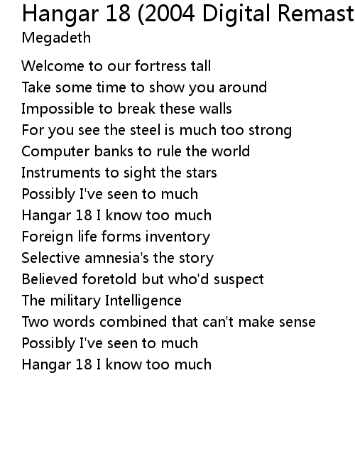 | [02:20.98] | Hangar 18 I know too much |
