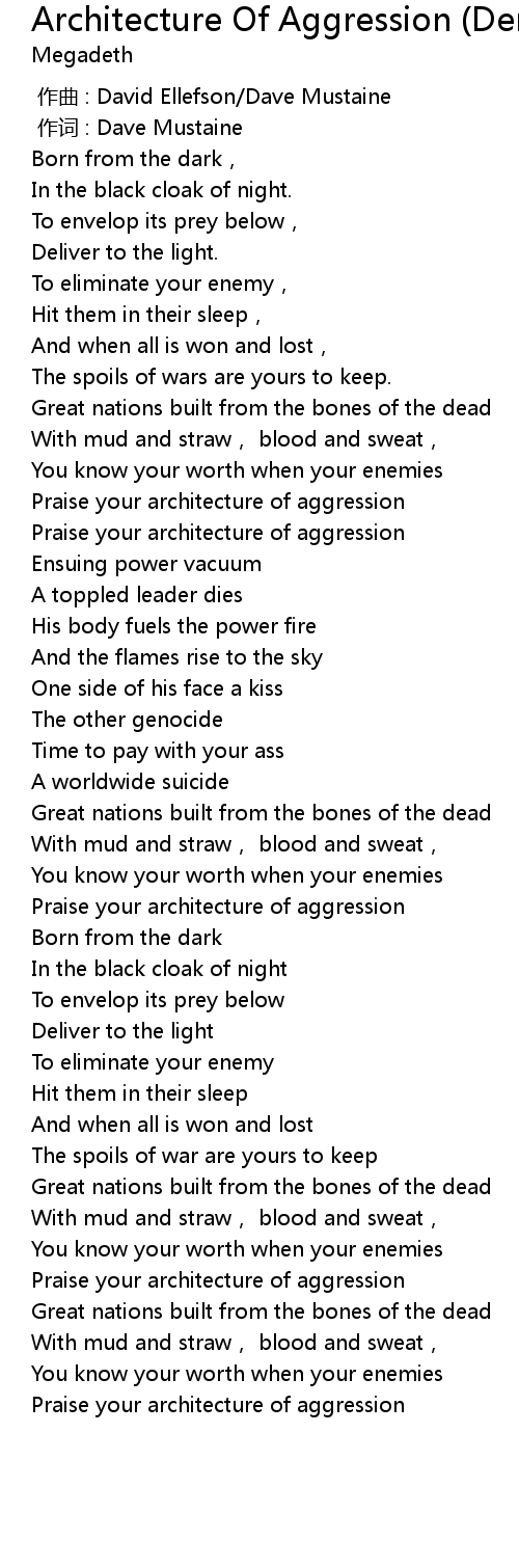| [00:57.15] | Praise your architecture of aggression |