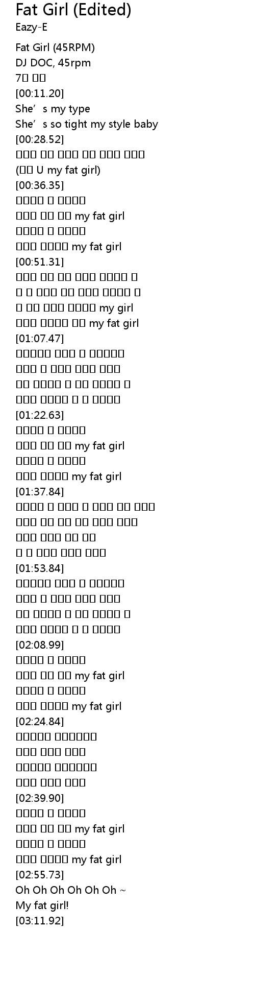 | [01:34.44] | my fat girl |