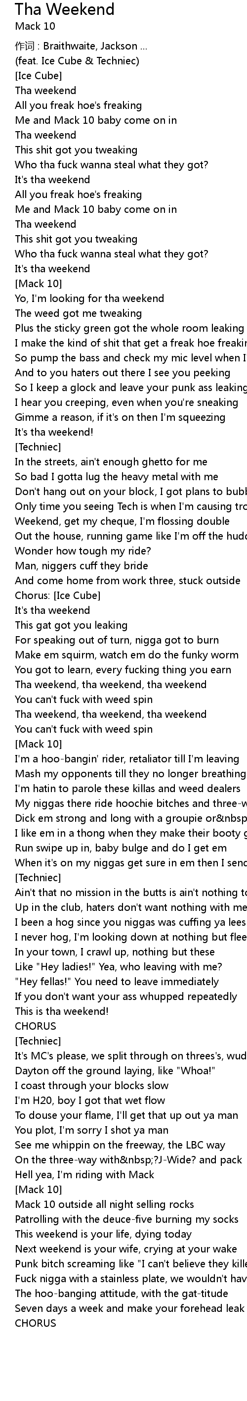 | Yo, I'm looking for tha weekend | |